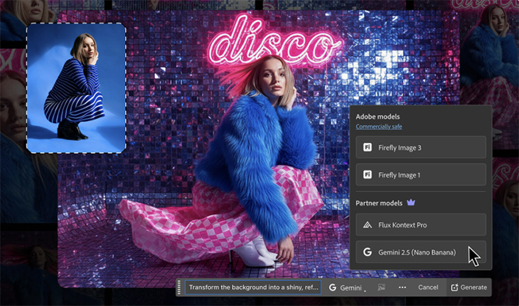 Použijte popisná zadání, nové kreativní ovládací prvky a partnerské AI modely k rychlému vytvoření a vylepšení úžasných výsledků.