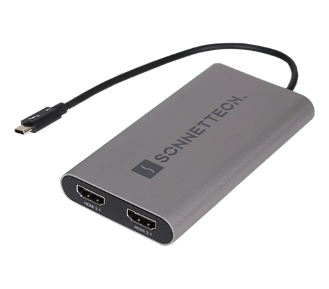 pro M1/M2/M3 Mac, černý Adaptér Thunderbolt Dual 4K HDMI 2.1 umožňuje připojení dvou displejů 4K k jednomu portu Thunderbolt. Připojíte až 2 HDMI displeje s rozlišením 4K @ 60 Hz (Mac) nebo až 4K @ 120 Hz (Windows) k jednomu portu Thunderbolt v počítači. Podpora 8K @ 60Hz a d...