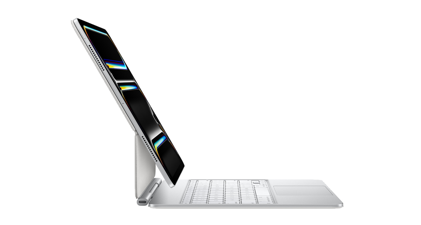 Magic Keyboard k iPadu Pro na pohodlné psaní a ovládání pomocí gest na trackpadu má nový elegantní design, hliníkovou dlaňovou opěrku a je krásně přenosný. Má řádek 14 funkčních kláves pro rychlý přístup k funkcím, jako je nastavování jasu displeje nebo ovládání hlasitosti, a USB-C konektor na průchozí nabíjení. Díky plovoucí konzolové konstrukci si hladce nastavíš ten správný pozorovací úhel.
