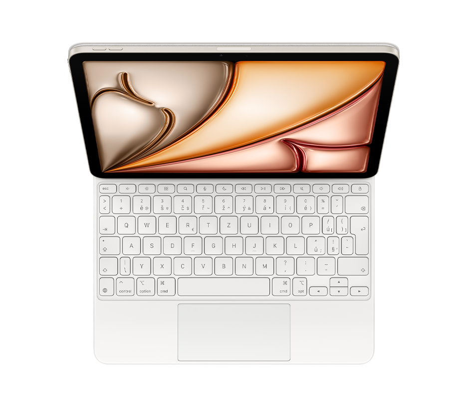 česká klávesnice a obal - bílýMagic Keyboard je ideální doplněk k iPadu Air. Má elegantní a přenosný design a je na něm radost psát i používat trackpad na přesné ovládání. Nechybí mu řádek 14 funkčních kláves ani USB-C konektor na průchozí nabíjení. Navíc chrání iPad zepředu i zeza...