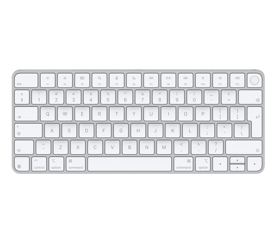 Na Magic Keyboardu s Touch ID se píše mimořádně pohodlně a přesně. Klávesnice je bezdrátová a dobíjecí. Její zabudovaná baterie má ohromnou výdrž – na jedno nabití udrží klávesnici v chodu i déle než měsíc.1 S Macem se spáruje automaticky, takže se můžeš rovnou dát do práce.