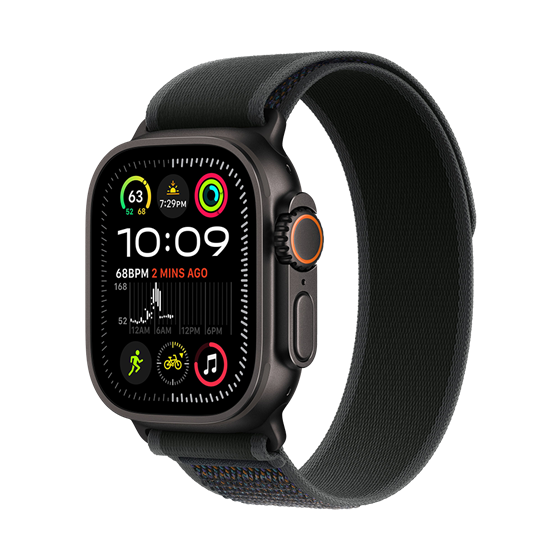černé titanové pouzdro s černým trailovým tahemNejodolnější a nejschopnější hodinky Apple Watch opět posouvají hranice. Nový procesor S9, ovládání dvojitým klepnutím prstů.