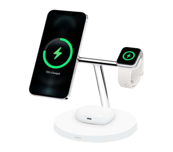 Nabíjení je snazší než kdykoli předtím. I když váš iPhone 12/13 nebo iPhone 12 Pro / 13 Pro vibruje, zůstává bezpečně na svém místě. Pro bezdrátové nabíjení vašeho nového iPhonu 12 nebo 13, magnetickým nabíjecím modulem pro vaše Apple Watch a nabíjecí plochou pro bezdrátové nabíjení vašich AirPods.