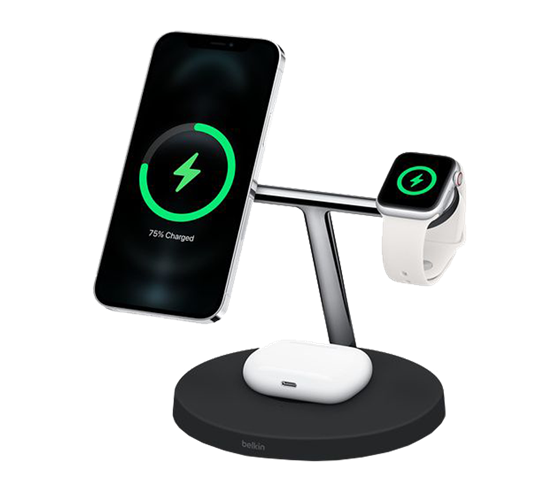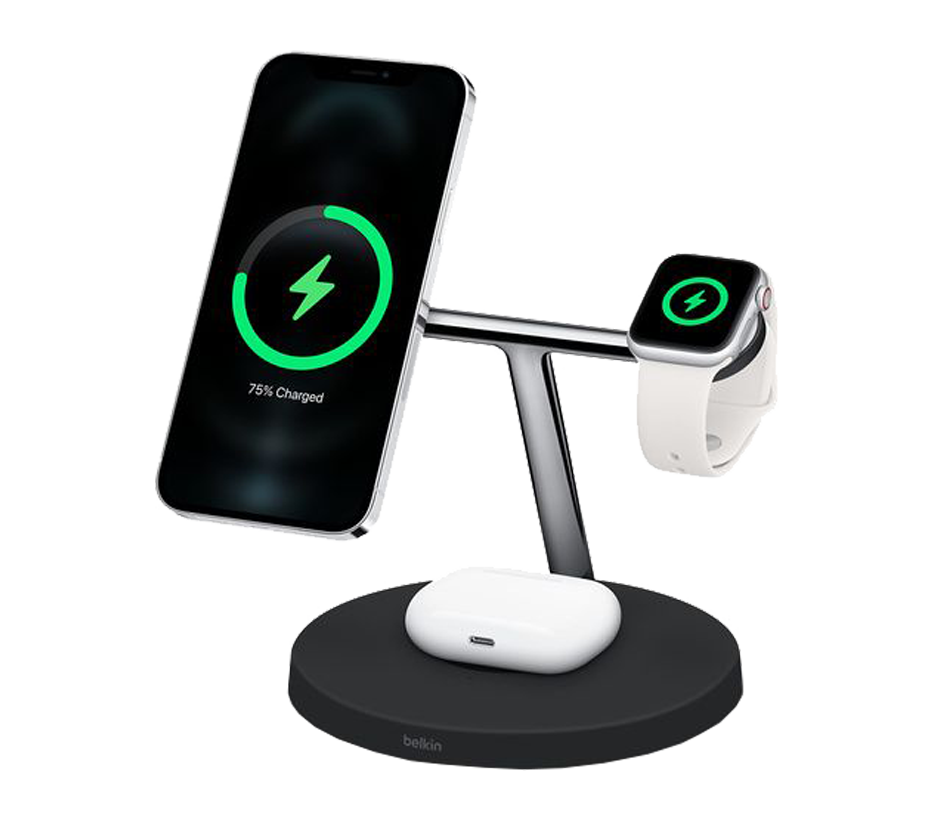 Nabíjení je snazší než kdykoli předtím. I když váš iPhone 12/13 nebo iPhone 12 Pro / 13 Pro vibruje, zůstává bezpečně na svém místě. Pro bezdrátové nabíjení vašeho nového iPhonu 12 nebo 13, magnetickým nabíjecím modulem pro vaše Apple Watch a nabíjecí plochou pro bezdrátové nabíjení vašich AirPods.