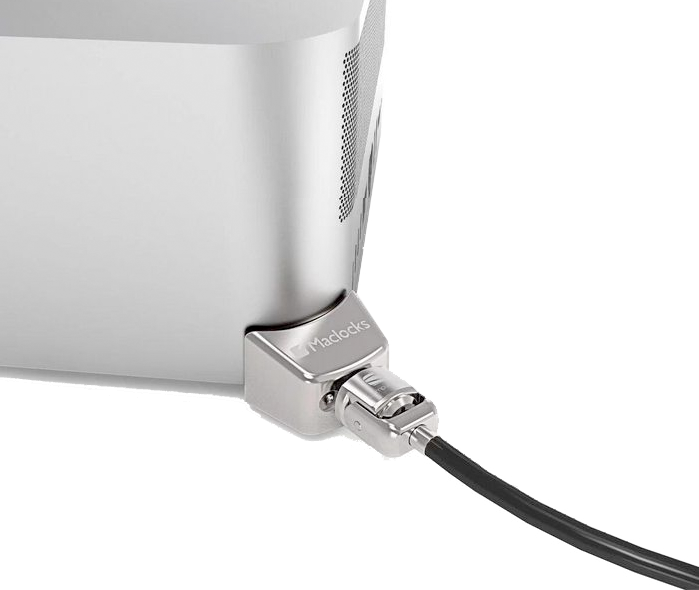 Adaptér se skládá ze dvou částí - desky T Bar, která se vkládá do slotu pro zámek na spodní straně Mac Studia, a adaptéru, který akceptuje všechny standardní kabelové zámky T Bar. Tento zámek umožňuje jednoduchým způsobem zabezpečit Mac Studio bez jakéhokoli poškození nebo manipulace se zařízením.