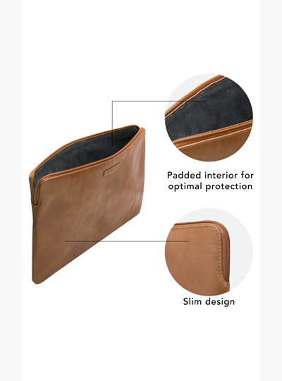 Kožený design přináší eleganci a sofistikovanost do úložiště notebooku. Zapínání na zip s ochranným vnitřním okrajem umožňuje úhledné a snadné otevírání a zavírání, zatímco polstrovaná podšívka podporuje vaše zařízení a poskytuje pevnou ochranu proti nárazům a nárazům. Kompaktní a tenký design usnadňuje vložení pouzdra do jiné tašky nebo aktovky. Pevné, odolné a spolehlivé kožené pouzdro bylo vyrobeno s vysoce detailním prošíváním pro dlouhodobé používání. Skagen od dbramante1928, navržený v Dánsku a ručně vyrobený zkušenými řemeslníky, spojuje sílu, funkčnost a styl a používá pouze ty nejkvalitnější materiály.