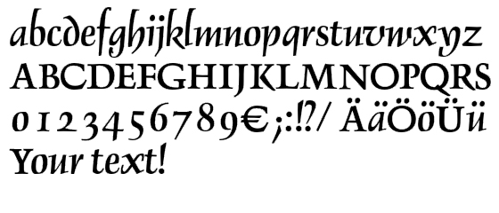 | Typ písma | Patková (Serif), Skript a kaligrafie |