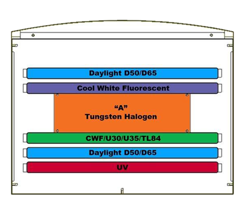 2x D65, 2x Inc A, TL84, CWF, UV-A Náhradní kompletní sada světel