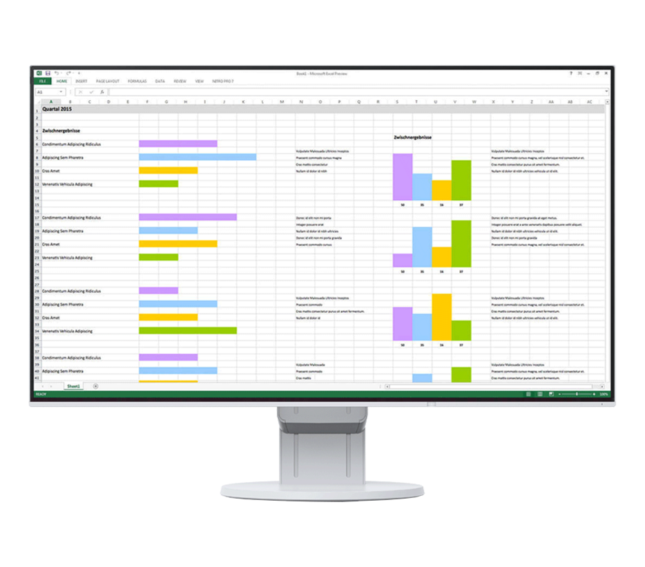 Monitor vytváří harmonický trojakord vynikající kvality obrazu: excelentní rozlišení 1.920 x 1.080 (Full HD) obrazových bodů, nejvyšší kontrast 1.000:1 a stabilní jas až 250 cd/m2. Což znamená: Vidíte text s obrysy ostrými jako břitva, skvostné grafiky a jasné obrázky. Díky kvalitním panelům IPS s podsvícením LED jsou kontrasty a barvy shodné pro libovolný zorný úhel.