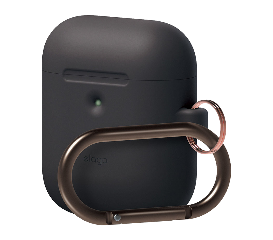 Propracovaný obal ochrání pouzdro Airpods. Praktickou karabinou připevníte na kalhoty, klíče, batoh a podobně.
