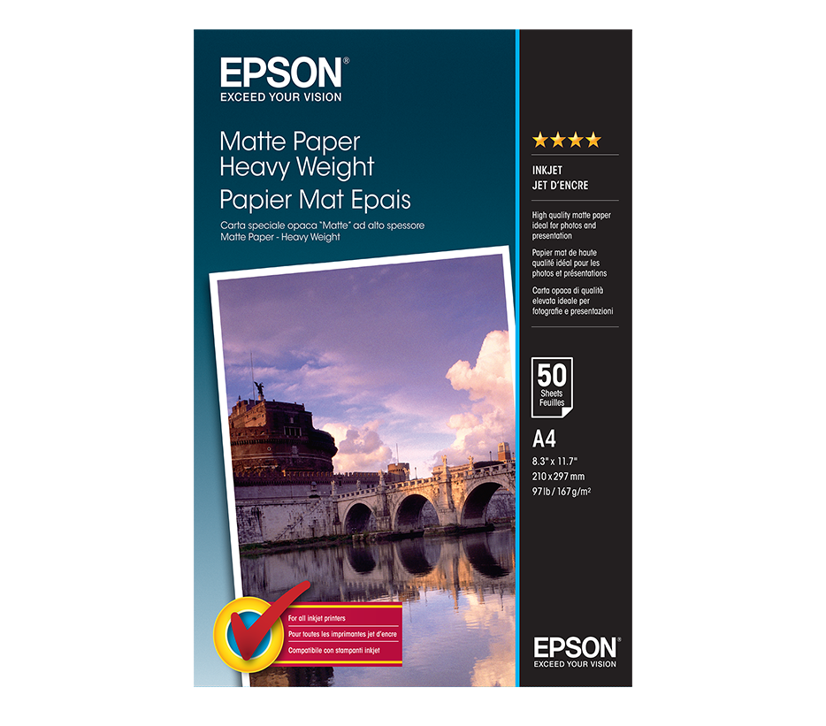 Epson Heavyweight Matte Paper je nejlepší médium pro tisk vysoce kvalitních fotografických výstupů pro uživatele, kteří hledají cenově zajímavý matný papír. Oblast použití sahá od reklamy, layoutů, nátisků až po plakáty pro interiéry.