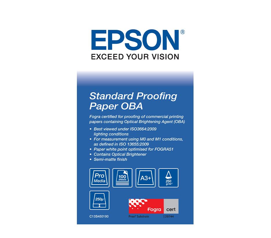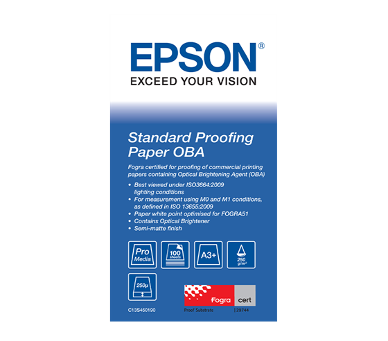 A3+, 100 listůNátiskový materiál Epson s gramáží 250 g/m2 je ideálním materiálem pro simulaci komerčního tisku v souladu s FOGRA 51.
