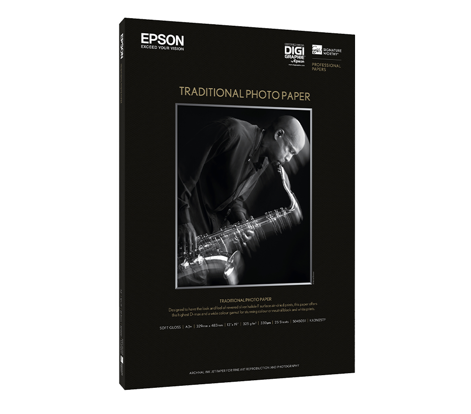 A3+, 25 listůTraditional Photo Paper patří k tomu nejlepšímu, co Epson nabízí pro nejkvalitnější tisk fotografií s nádechem podoby s klasickými analogovými fotografiemi.