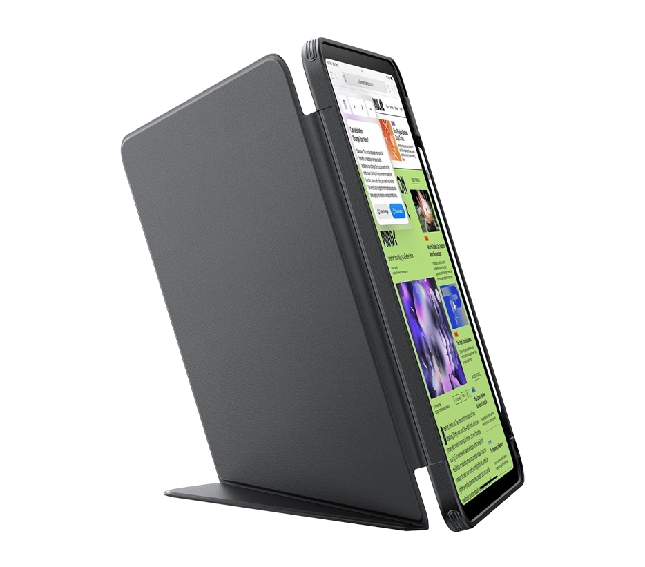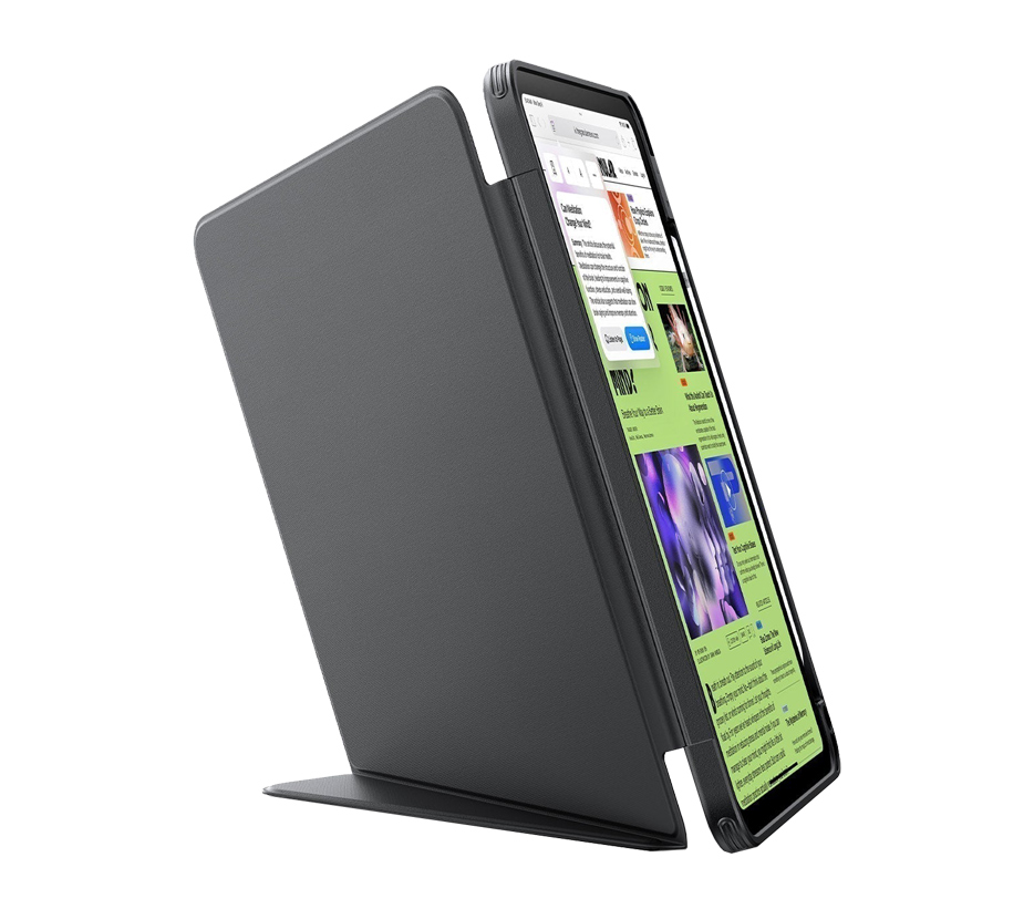 Díky magnetickému stojánku, který se vyznačuje zvětšenou opěrnou plochou pro větší stabilitu, si můžete vychutnat mimořádně stabilní sledování obrazu jak v horizontální, tak ve vertikální poloze. Je vybaven štíhlým, lehkým úchytem a praktickým držákem na tužku.