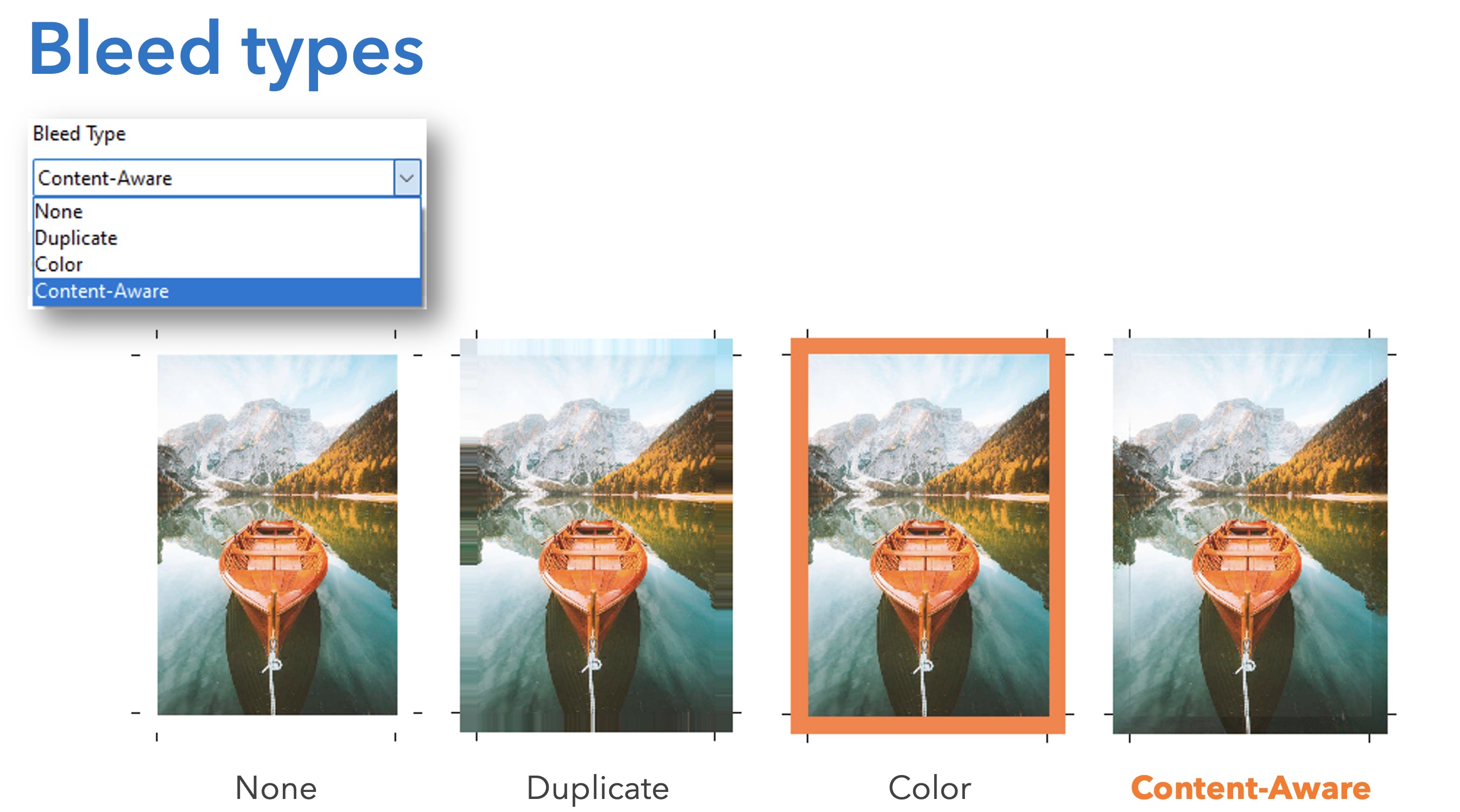 - Automatické generování spadávky: Algoritmus analyzuje pixely na okrajích obrazu a inteligentně dopočítává chybějící spadávku (bleed). To eliminuje nutnost vracet data grafikovi v případě, že soubor postrádá přesahy pro ořez.