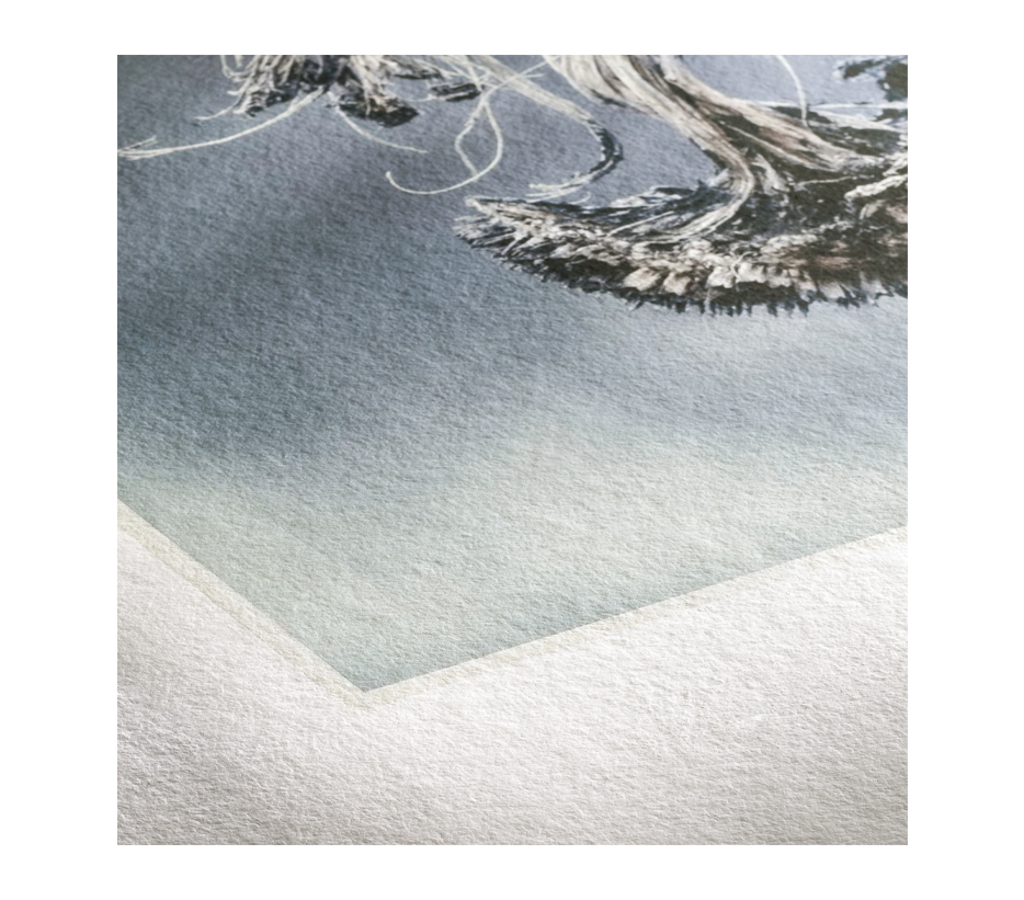Papír Museum Etching je také k dispozici ve formátech A2 a A3+ s ručně trhanými okraji na všech čtyřech stranách, což vytváří exkluzivní potisky, které vyniknou v plovoucím rámu a dodají dílu unikátní charakter.