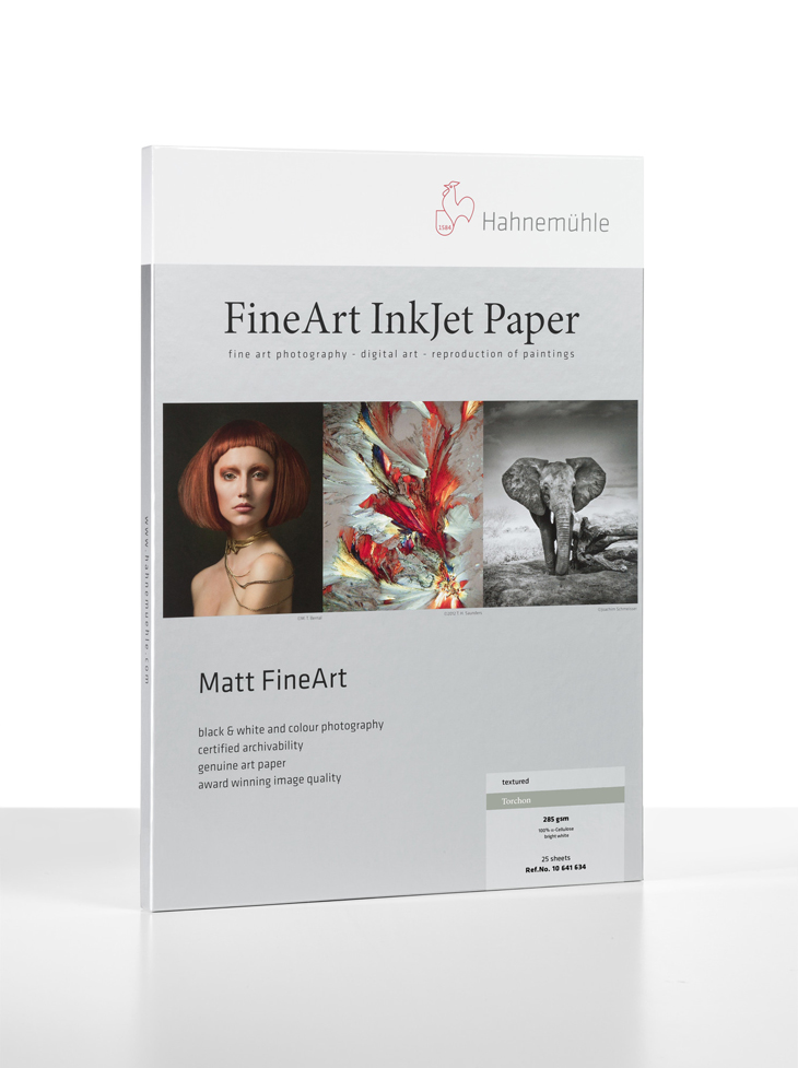Hahnemühle Torchon je FineArt papír pro inkoustové tiskárny, vyrobený na bázi celulózy a s inkoustovým povlakem, který je speciálně navržen pro FineArt aplikace. Tento jasně bílý umělecký papír má výraznou, hrubou plstěnou texturu a poskytuje unikátní hmatový zážitek. Jeho specifická povrchová struktura dodává tisku impozantní trojrozměrný efekt a pocit hloubky. Díky vysoce kvalitnímu matnému inkoustovému povlaku nabízí vynikající tiskové výsledky s živými barvami, precizní reprodukcí detailů a hlubokou černou. Papír Torchon je bez kyselin a ligninu, čímž splňuje nejnáročnější požadavky na odolnost proti stárnutí.