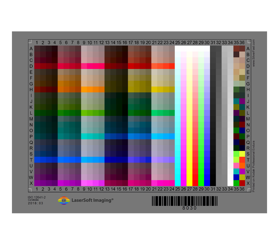 Terč je vybaven čárovým kódem, který umožňuje automatickou kalibraci skeneru: Stačí vložit jej do skeneru, spustit kalibračního asistenta a příslušná referenční data se automaticky stáhnou a vypočítají s daty z kalibračního měření pro vytvoření individuálního profilu skeneru. Takto snadné je to pouze s technologií SilverFast a na tento jedinečný vývoj byl udělen evropský patent (EP 1594301).