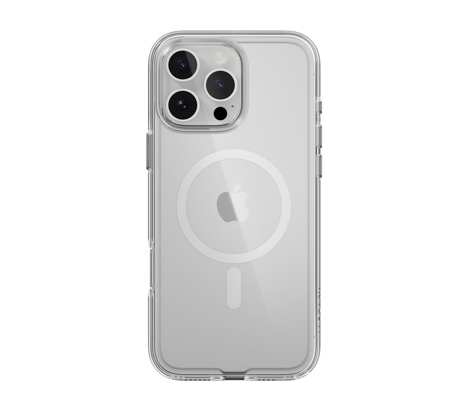Materiál PC s vysokou optickou propustností, který zabraňuje žloutnutí, zajišťuje dobré podání barev iPhonů a pro jistotu je testován při vystavení UV záření. Zesílená konstrukce rámu poskytuje ochranu proti pádu z výšky až 12 stop. Nezávislá kovová tlačítka se skvělou odezvou a texturou zvyšují úroveň uživatelského zážitku. Gravírovaný magnetický kroužek, kompatibilní s příslušenstvím MagSafe.