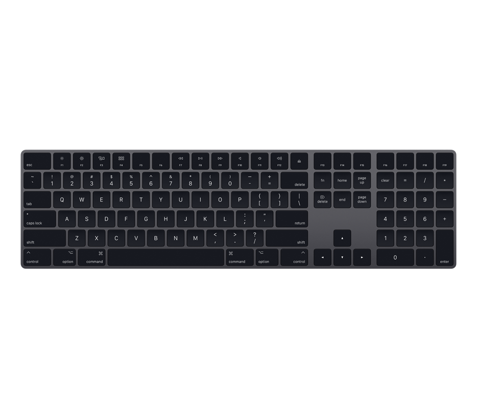 international english rozložení, vesmírně šedá (IE)Magic Keyboard s číselnou klávesnicí, international enghlish, nabízí rozšířené rozvržení včetně kláves pro rychlé posouvání v dokumentech a kláves se šipkami plné velikosti pro hraní her. Díky nůžkovému mechanismu pod každou klávesou, který zajišťuje v...