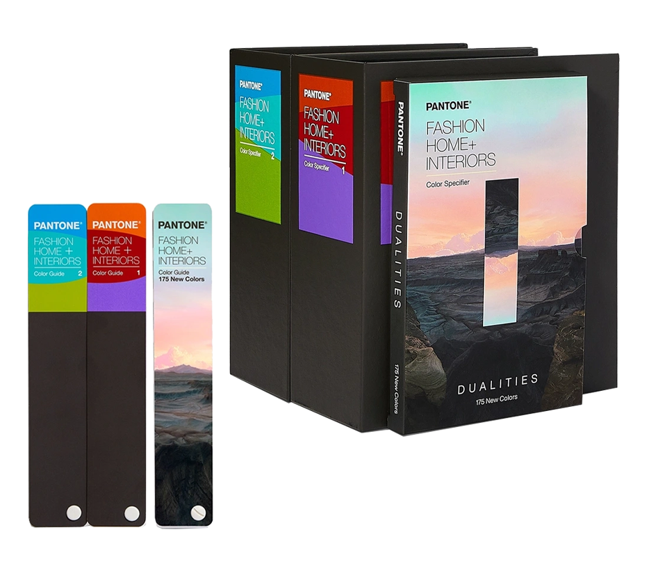Vějířový vzorník pro komunikaci barev v textilním a módním průmyslu nebo oblasti interiéru. Obsahuje 2 625 barev FHI + 175 nových barev v rozšiřujícím balíčku Duality Pack.