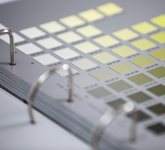 1,825 barevných vzorků (chipsů) o velikosti: 1,7 x 1,7 cm.