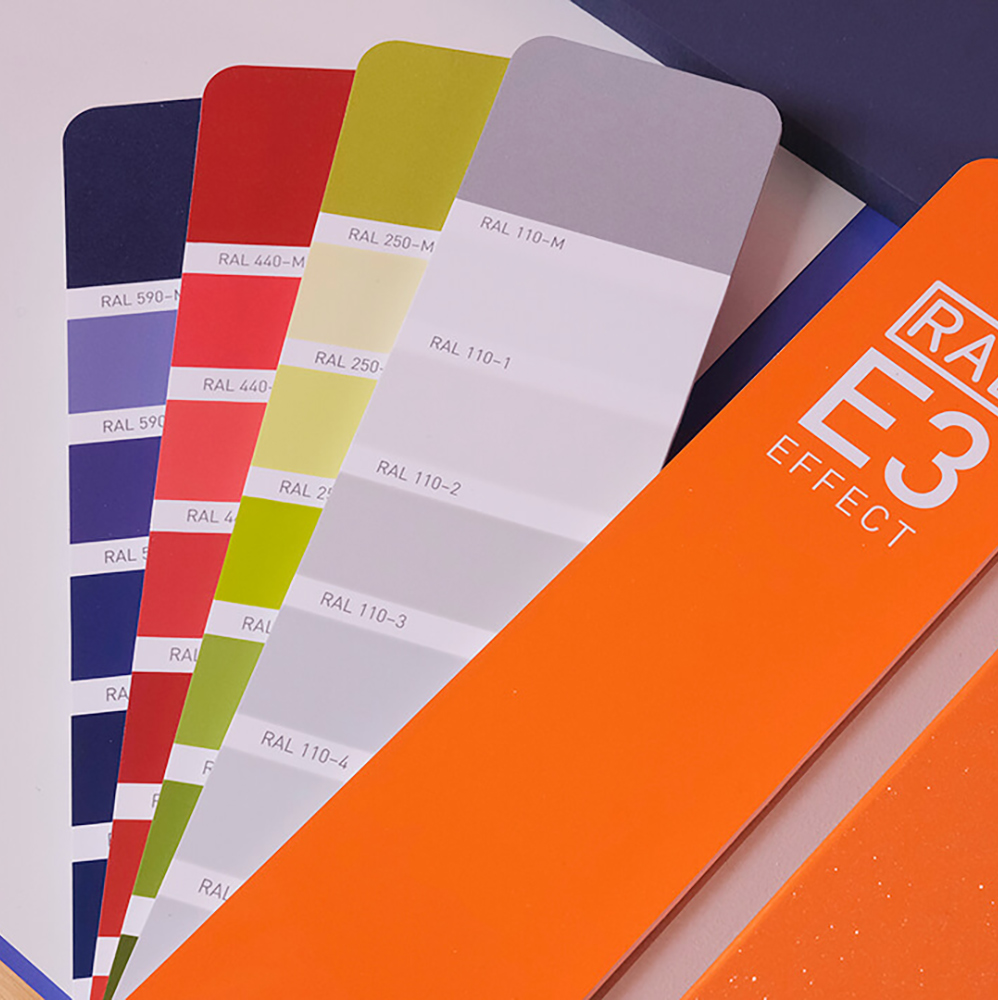 RAL E3 EFFECT je barevný vrorník z kolekce RAL EFFECT, který představuje harmonické spojení klasických (ne-metalických) odstínů a metalických efektů vhodných pro moderní design, průmyslové aplikace i architekturu. Odstíny jsou přehledně rozdělené podle 70 metalických barev – ke každé z nich patří šest ladících nemetalických odstínů.