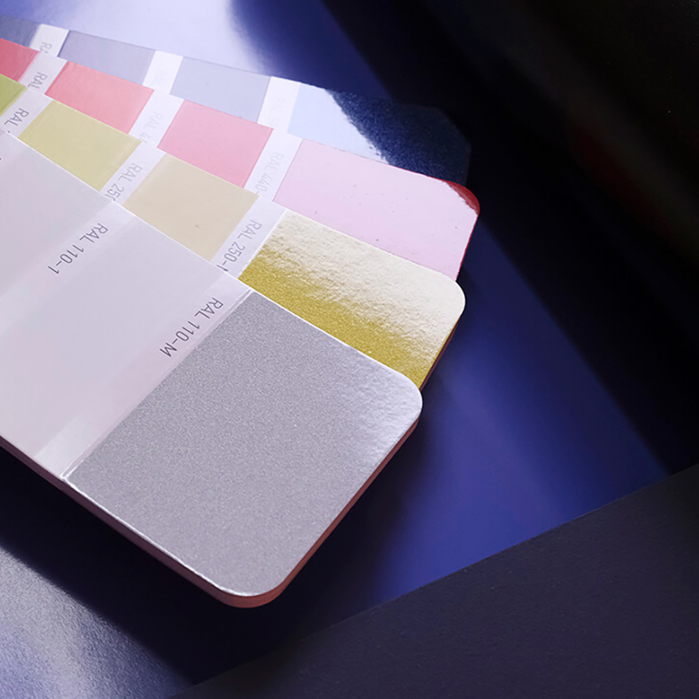 Metalický vzorník RAL.Moderní RAL vzorník se 490 metalickými a běžnými odstíny pro profesionální a kreativní práci s barvami.