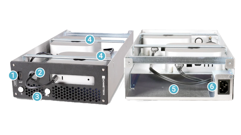 Modulární rozšiřování + přístupnost Modul xMac mini (2024+) je srdcem skříňových systémů xMac mini (2024+) od společnosti Sonnet. Modul bezpečně drží jeden nebo dva počítače Mac mini (2024+) (prodávané samostatně) v robustním ocelovém rámu, který je určen k instalaci do kompatibilního stolního nebo rackového pouzdra Sonnet nebo modulárního rozšiřujícího systému.
