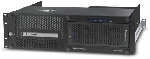 Sonnet xMac Studio integruje Mac Studio do kompaktní skříně pro montáž do 3U racku s volitelným rozšiřujícím modulem karty PCIe pro podporu různých potřeb audio a video aplikací.