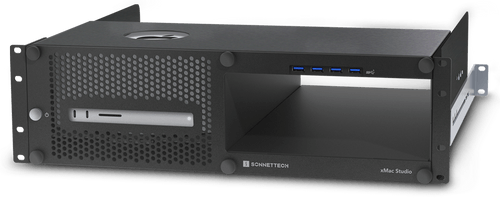 Sonnet xMac Studio integruje Mac Studio do kompaktní skříně pro montáž do 3U racku s volitelným rozšiřujícím modulem karty PCIe pro podporu různých potřeb audio a video aplikací.