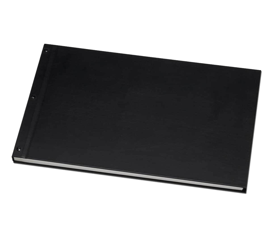 518 x 330 mm, 25 listůKvalitní velkoformátová fotokniha s deskami z jemné kůže v barvě antracitu ve formátu 48,3 x 33 cm na šířku. Vazbu zajišťují tři kovové šrouby, umožňující individuální a flexibilní složení knihy. Fine-artový materiál PFR200 s potisknutelnou povrchovou ...