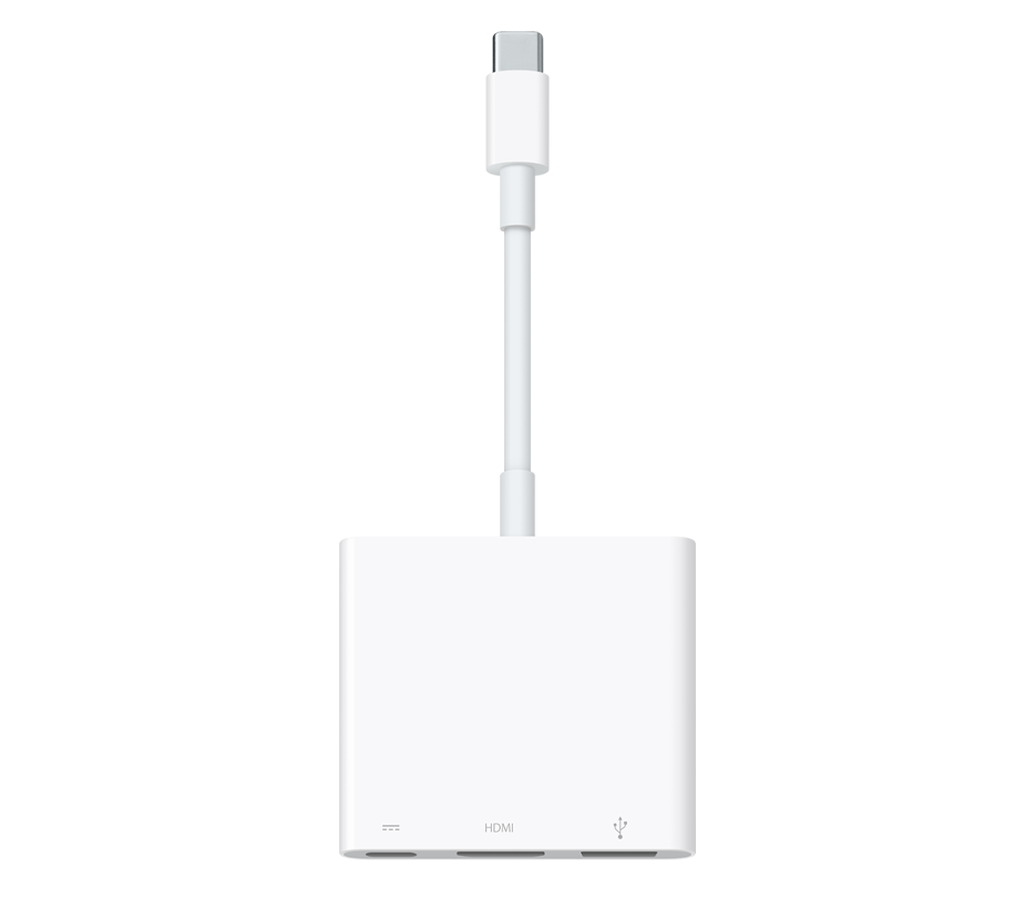 Víceportovým adaptérem USB-C / digitální AV připojíš Mac nebo iPad Pro s USB-C portem k HDMI displeji. Navíc k němu můžeš připojit standardní USB zařízení a USB-C nabíjecí kabel.