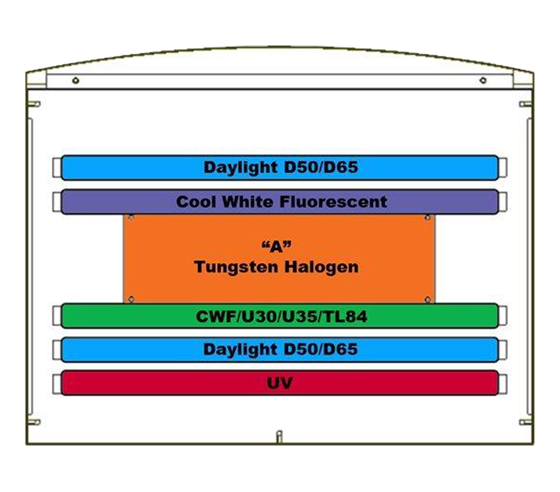 2x D65, 2x Inc A, TL84, CWF, UV-A s DPH
