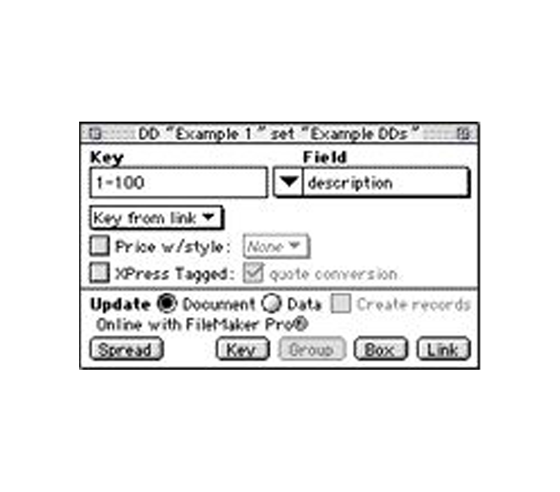 Doplněk (verze 4.x/6.x) pro dvousměrné propojení quarkovského dokumentu a databáze. Lze provádět automatizovaný update, který buď dokument naplní položkami z databáze nebo naopak z dokumentu přenese stanovené položky do databázových záznamů.