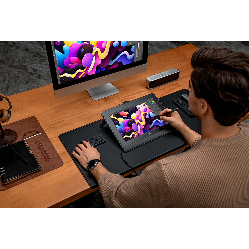Při práci s tabletem oceníte i funkce jako rozdělení obrazovky nebo promítání obrazovky, tablet se proto oceníte i při hraní her nebo sledování filmů a seriálů. Mezi aktivitami můžete libovolně přepínat: dlouhé stlačení tlačítka zapnutí vypne displej a můžete kreslit. Vestavěný stojánek grafického tabletu XPPen Artist Pro 14 (2nd Gen) zajistí maximální pohodlí při sledování.